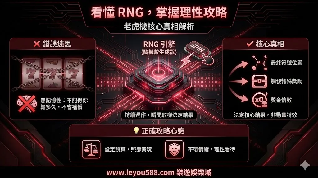 從老虎機攻略的角度來看,RNG 決定的不是「畫面轉得好不好看」,而是最核心的結果。